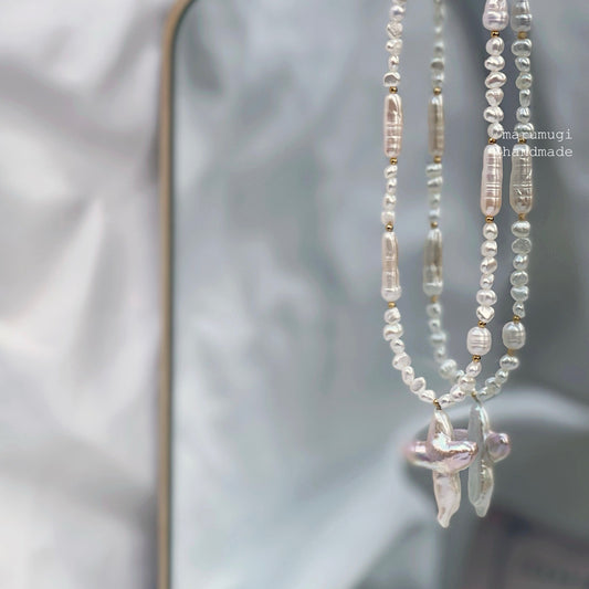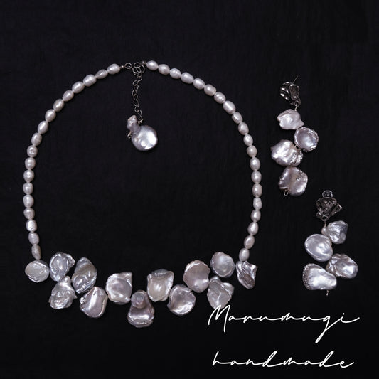 大人気₊⁺♡̶現品「Flower×バロックパール」ケシパールのネックレス・ピアス(イヤリングにも変更可)