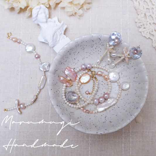 現品「天然淡水バロックパール×14kgf」ブレスレット・ネックレス・ピアス(イヤリングにも変更可)