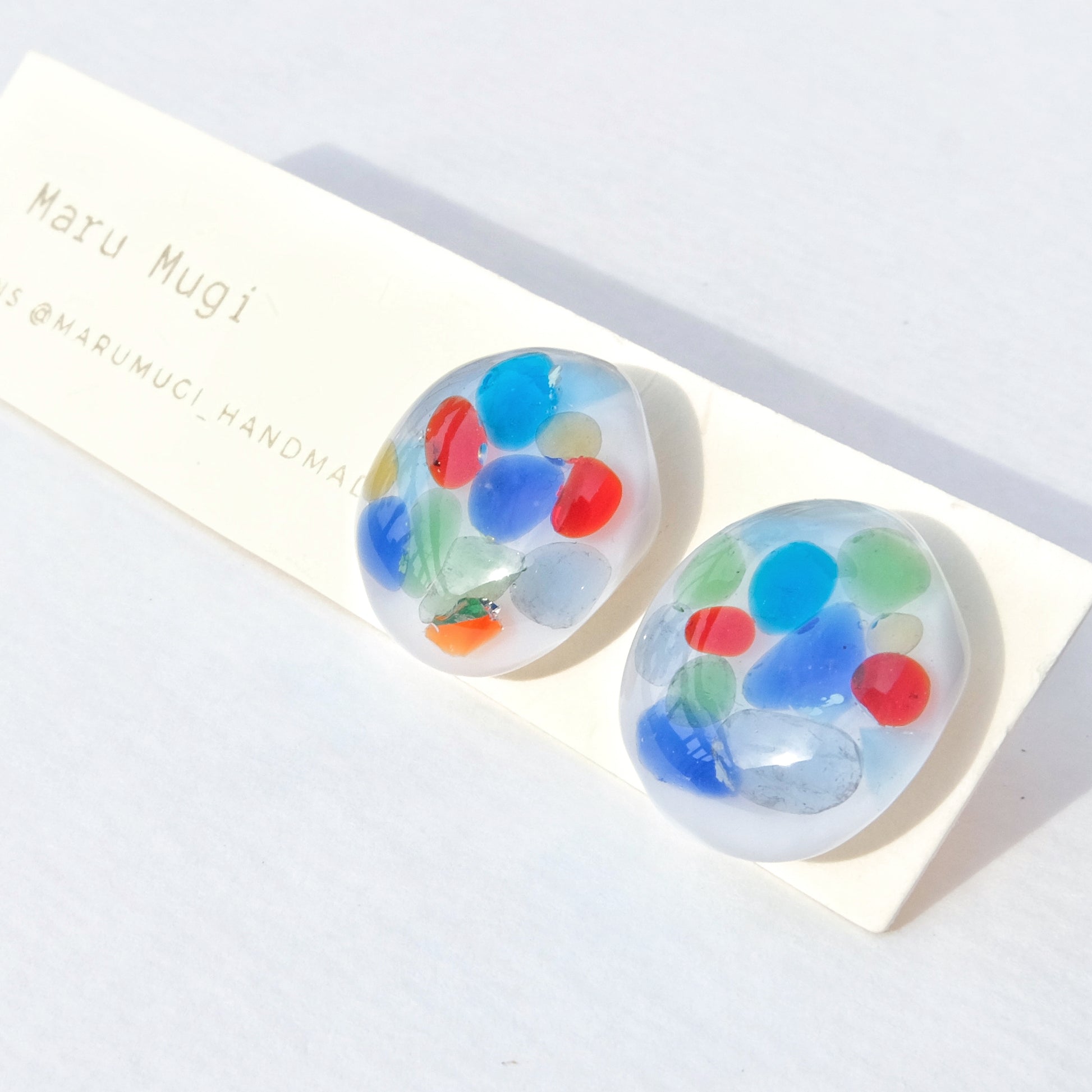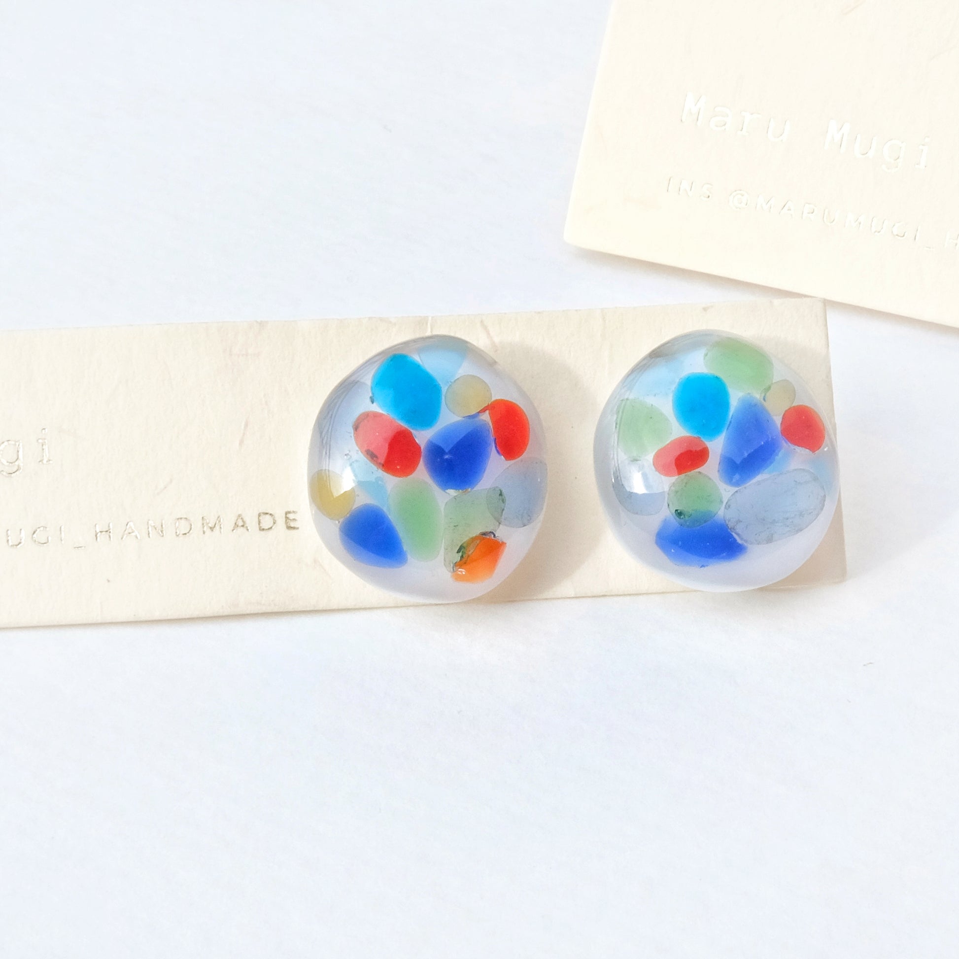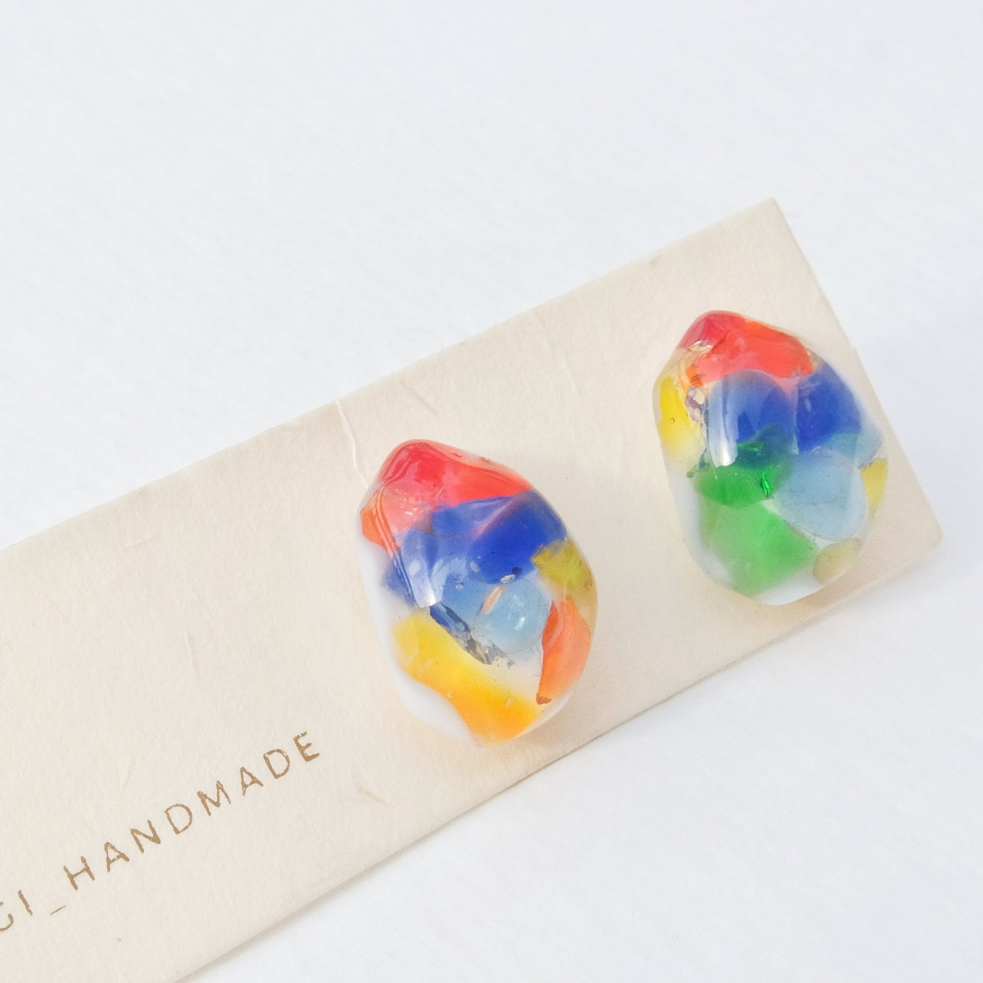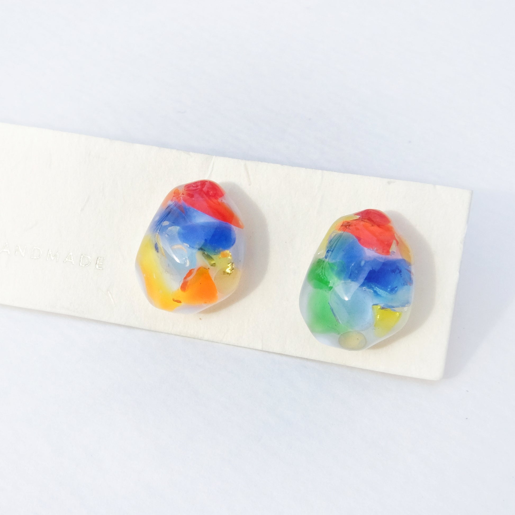七色のガラスを閉じ込めた、レジンピアスです🩵うる艶に仕上げる為、一から拘って制作しています!