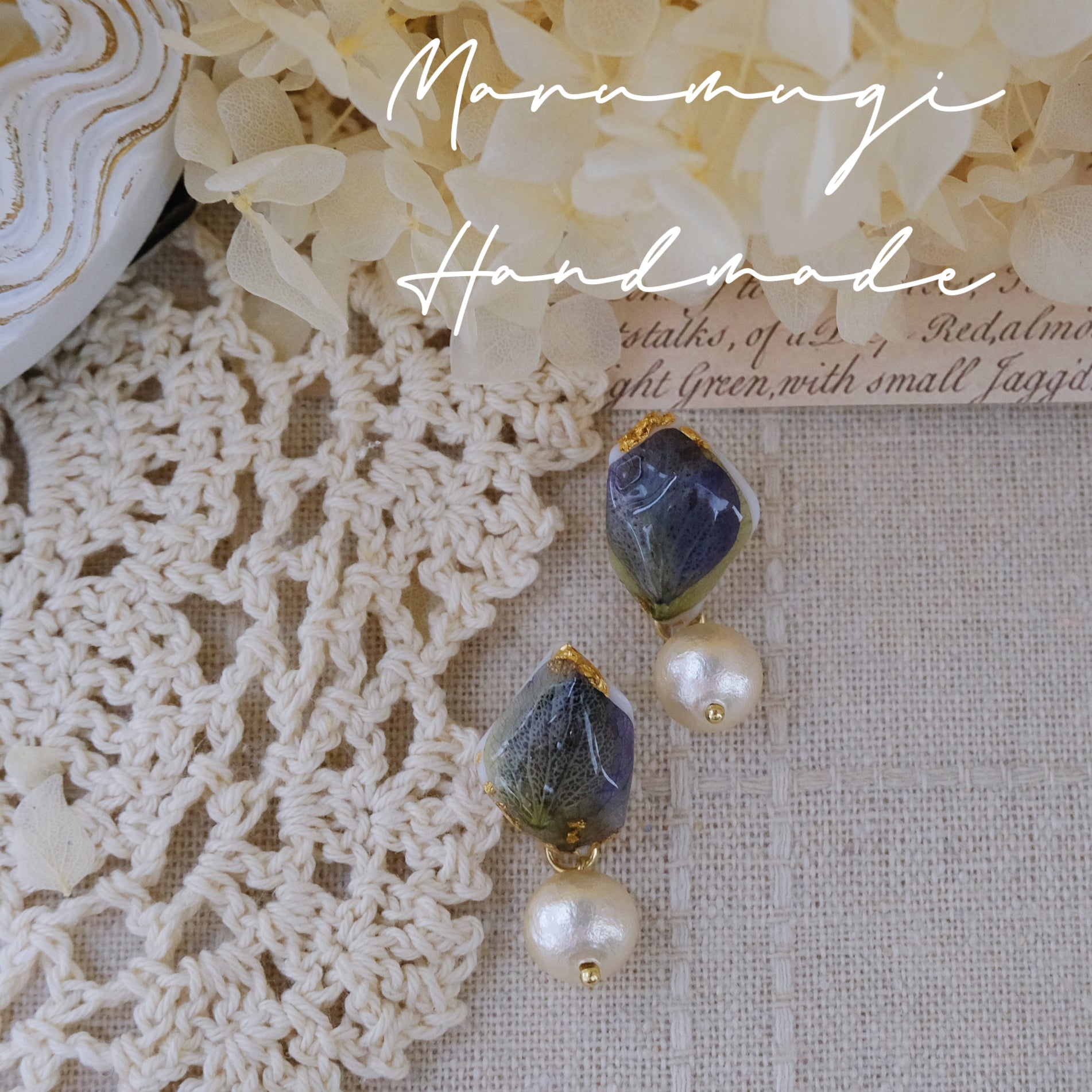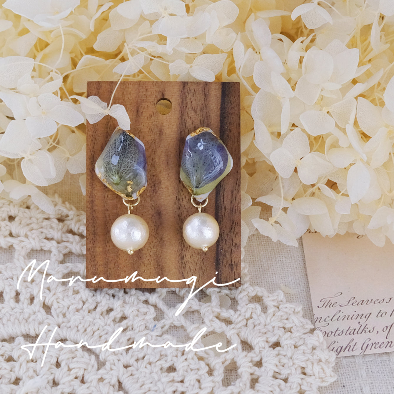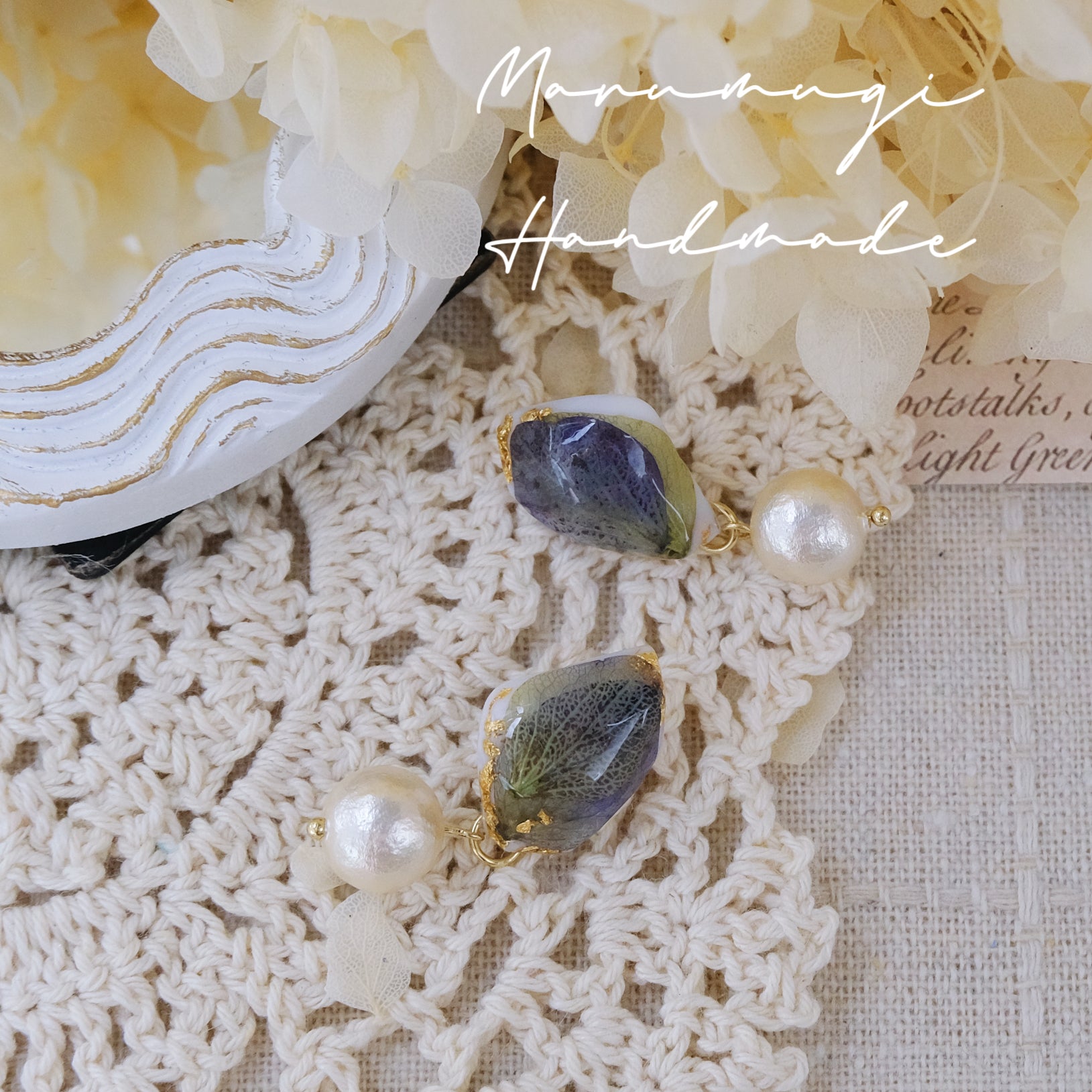 現品「レジンxアジサイ花びら」ピアス(イヤリングにも変更可)