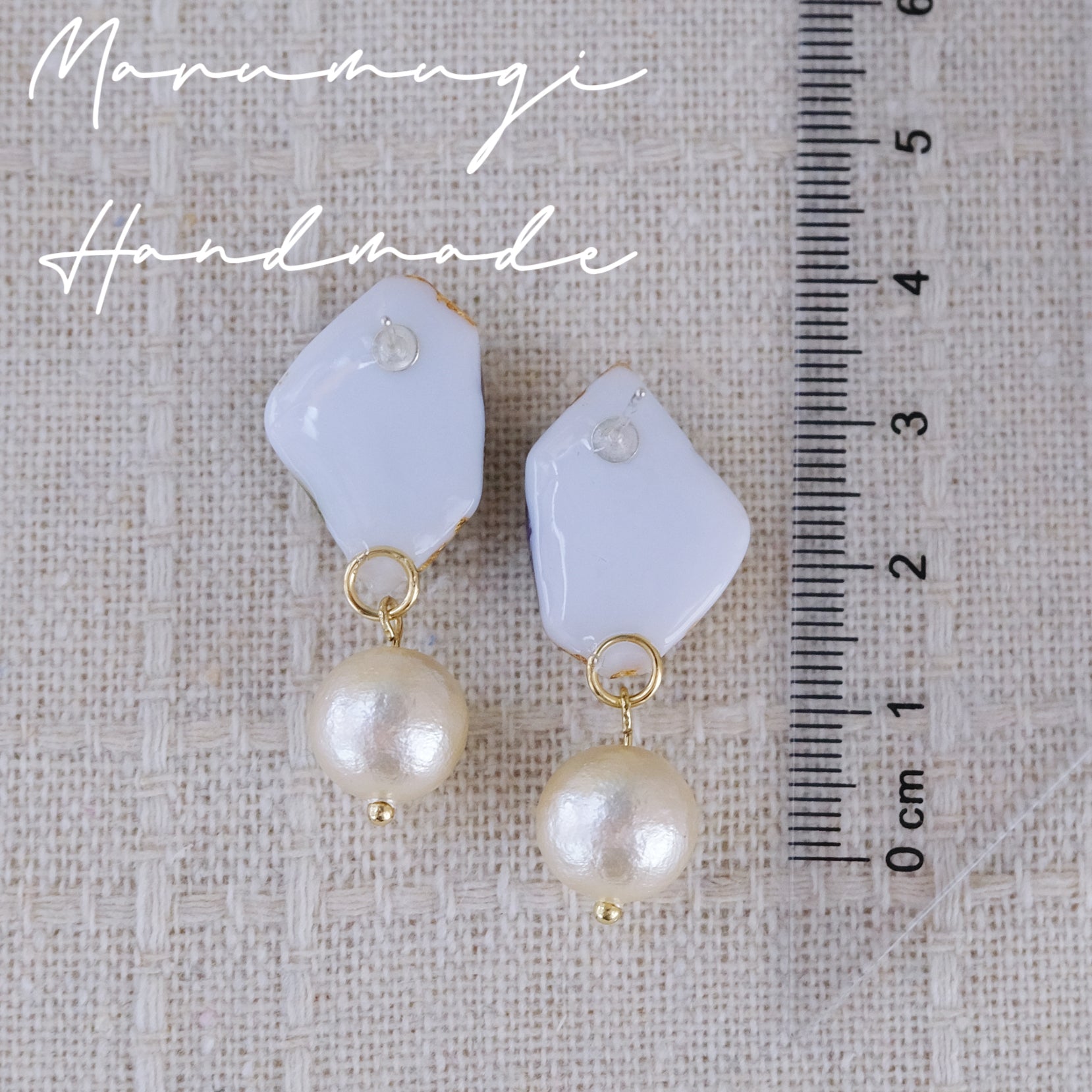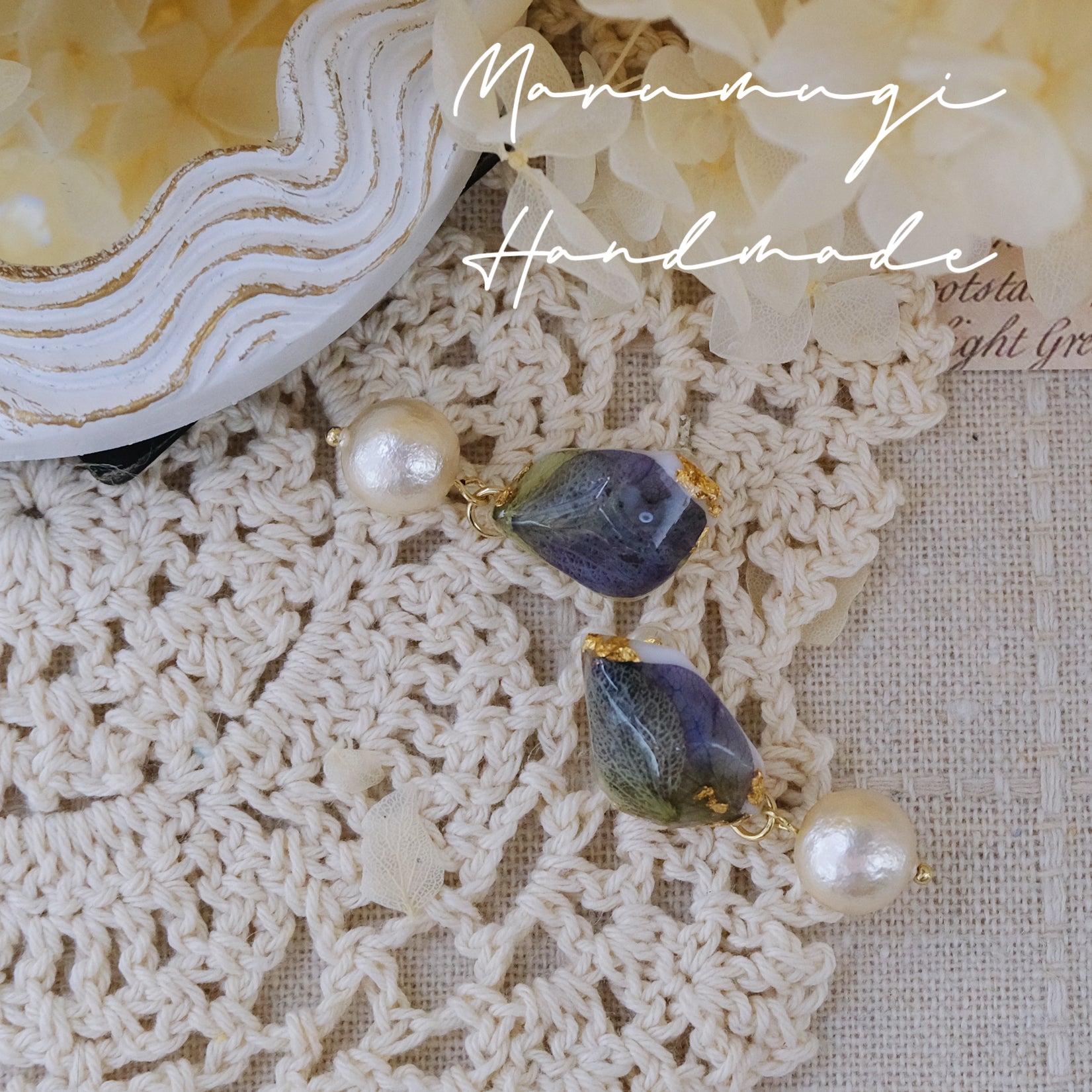 ドライフラワー、コットンパール、レジン、金箔、k14gf、SV925製ピアスポスト