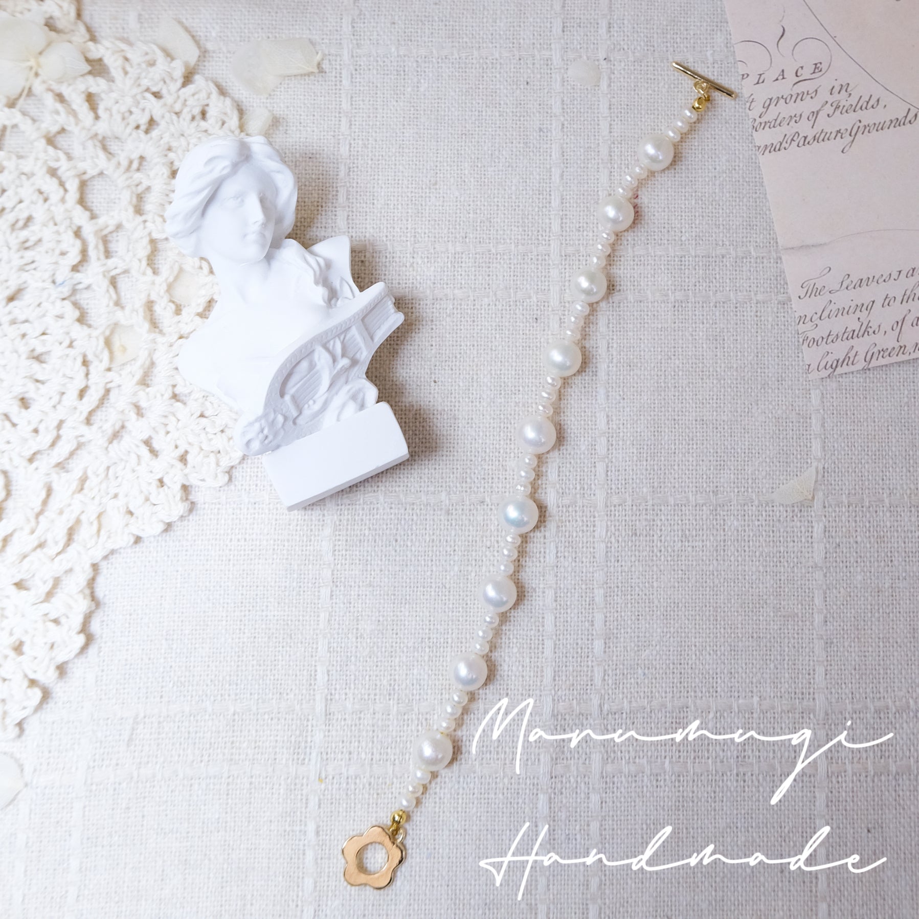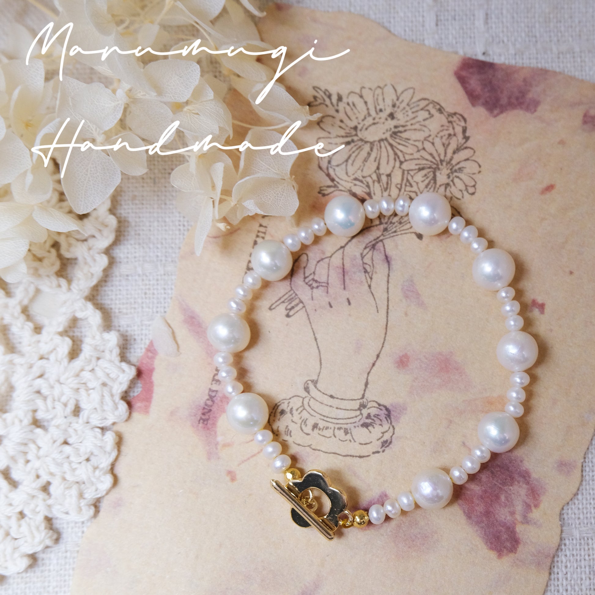 現品「小花×天然淡水パール」ブレスレット𓈒𓏸