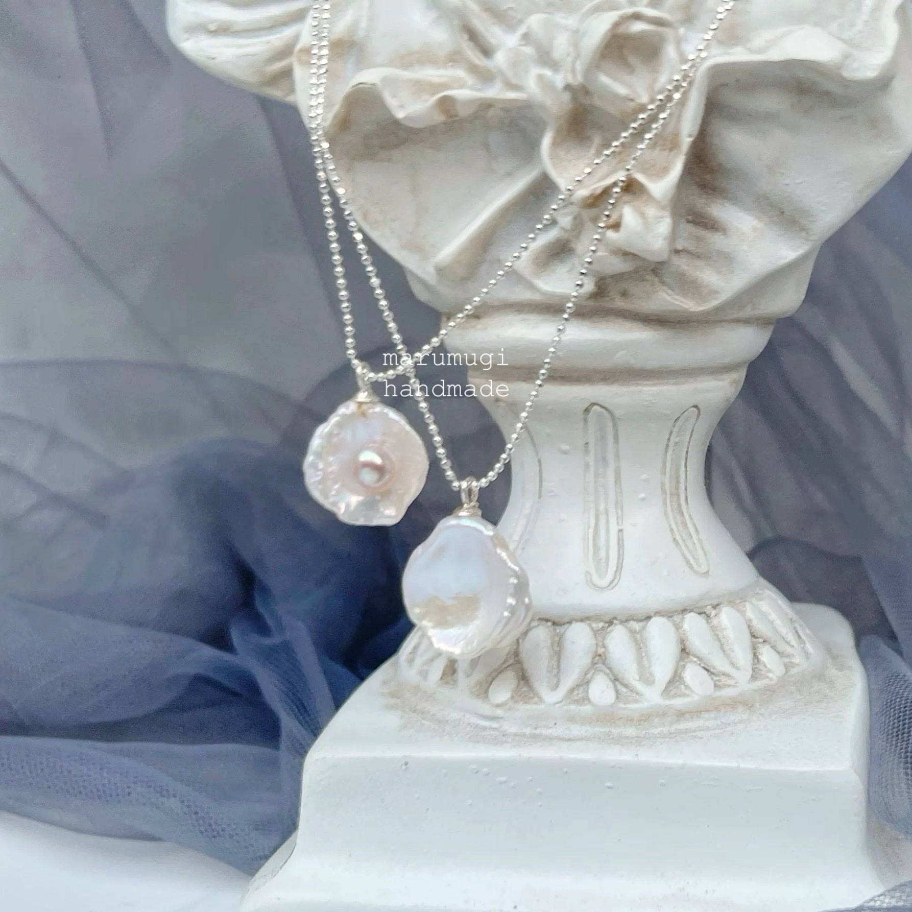花びらパールシルバーネックレス 淡水パール sv925製 真珠 アレルギー対応